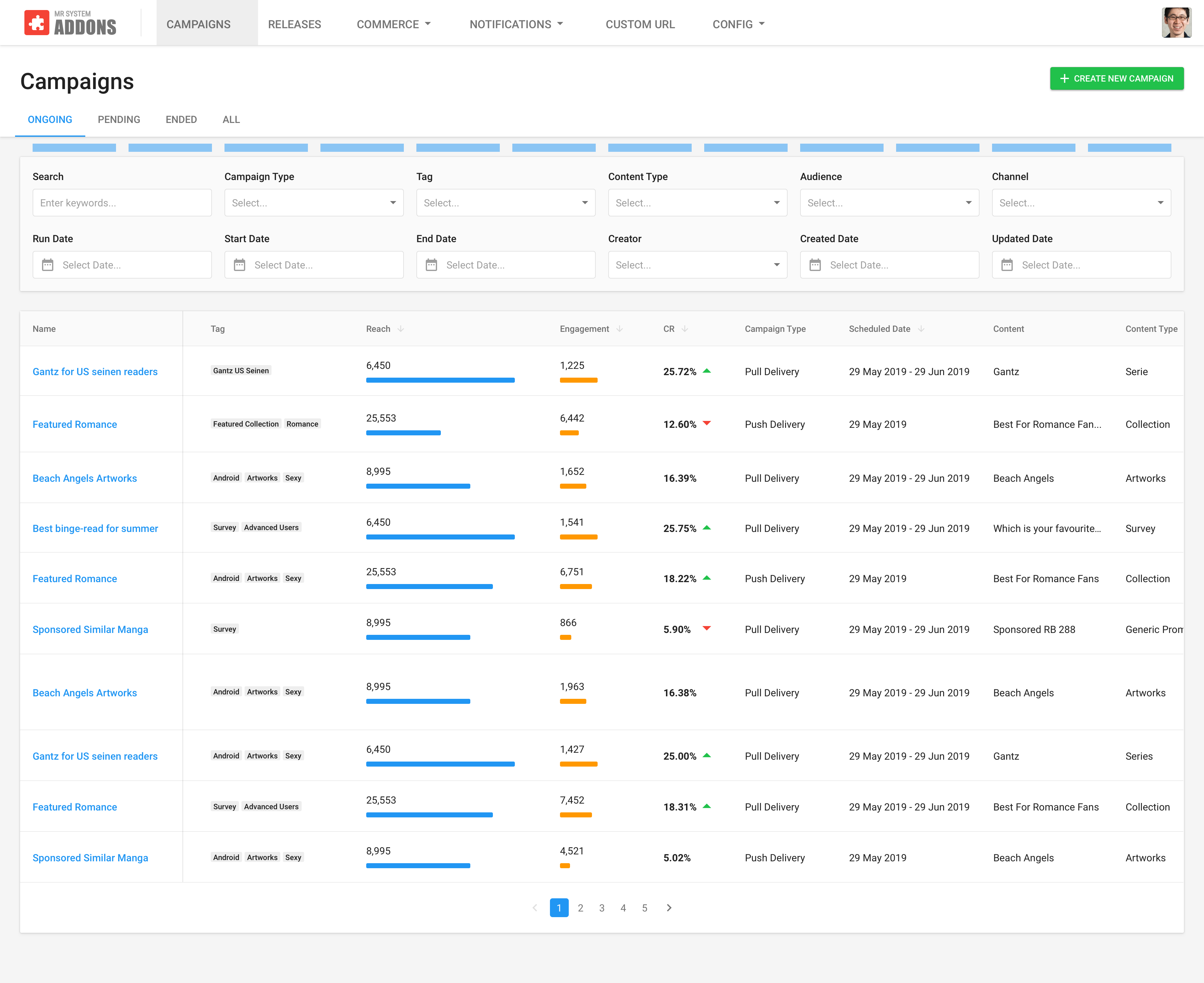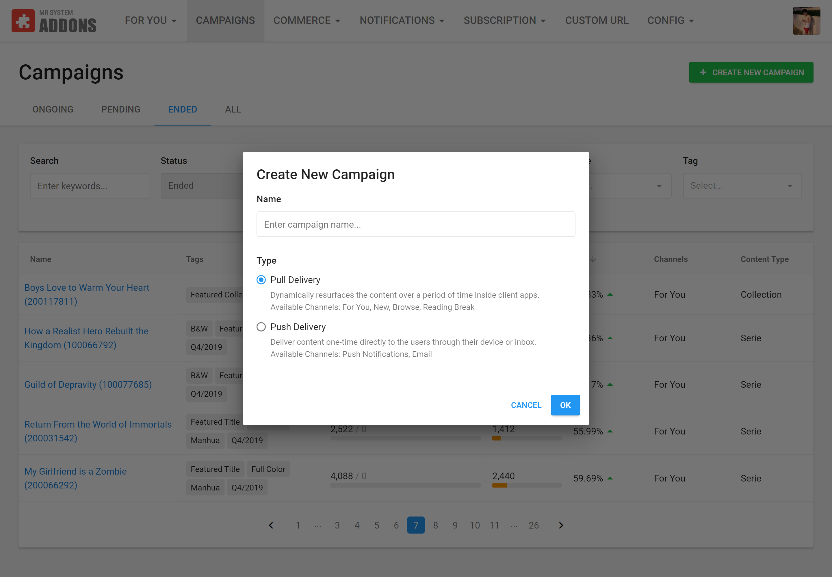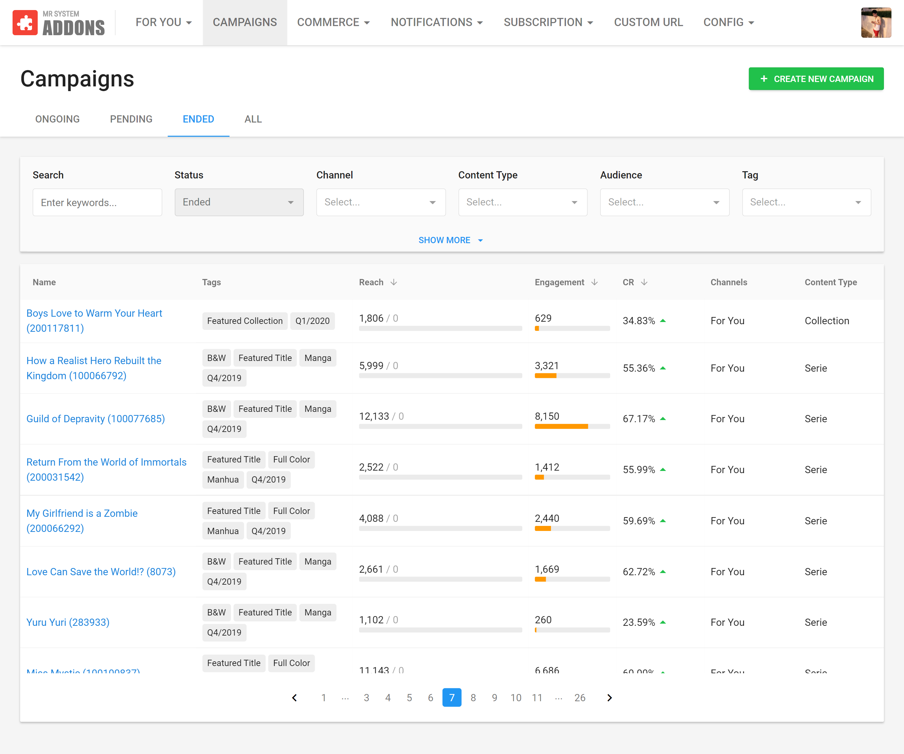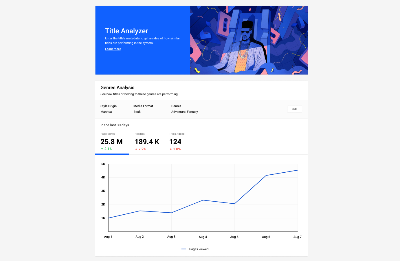 The very first user interface that we built is for the content management system (CMS) that lets the content manager manage all comic titles on our flagship comic reader mobile app. At the time, there was no internal product design team yet, so the development team naturally took on the responsibility of deciding how the interface was going to look like. They settled on Bootstrap UI.