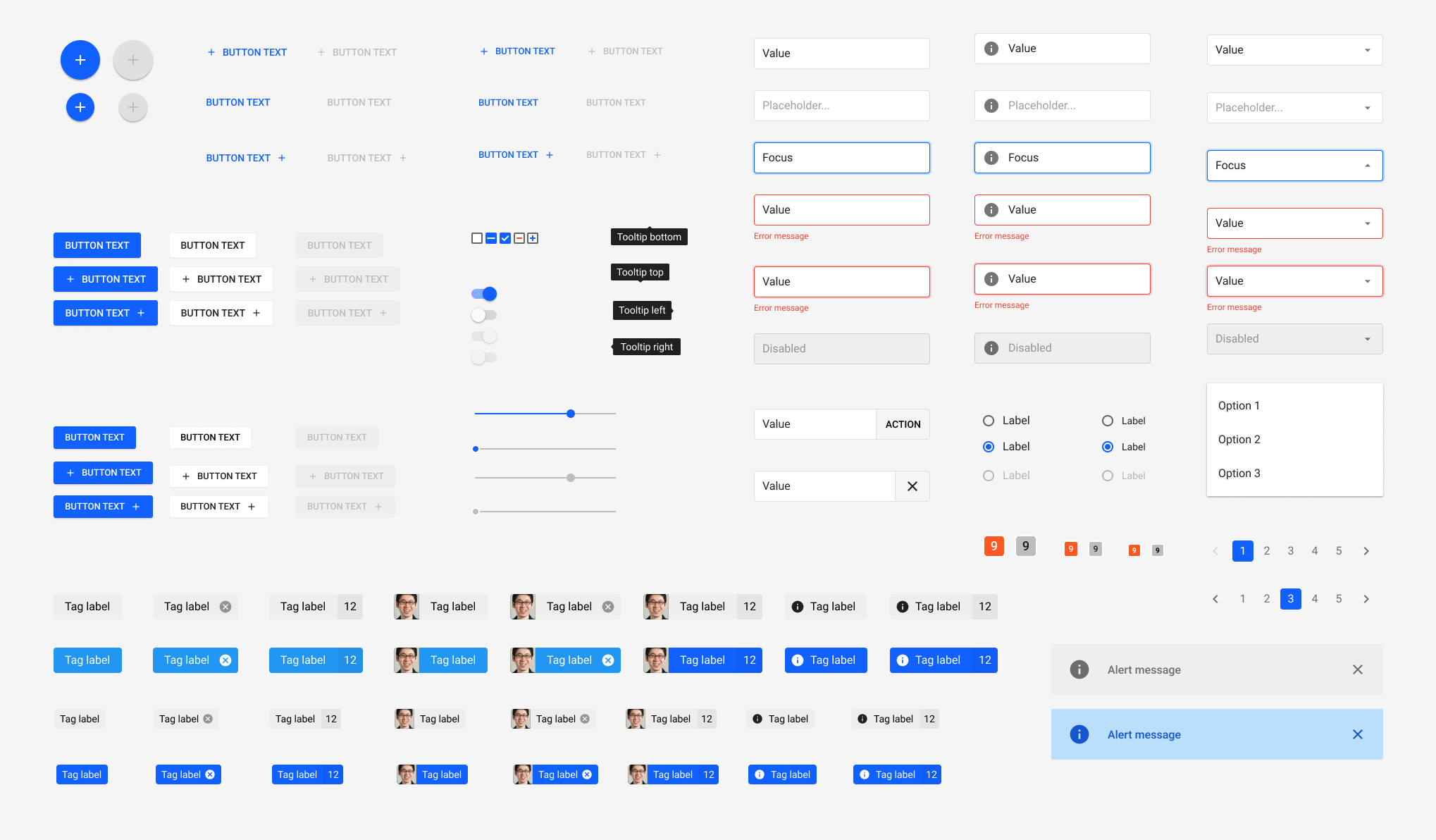 The components were created in Sketch and later Figma. We added in more states as the product design required it. One of the key requirements was that they need to be resizable without breaking, so that we can use the components in a variety of scenarios.