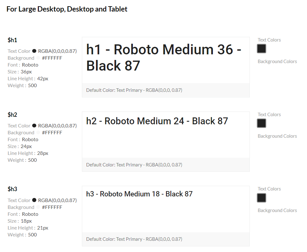 We decided to stick with Material Design's default font Roboto and went on to define some text styles that are going to be used over and over again. Setting up text styles is important for maintainability so that later on changes we made to the design system can be applied globally.