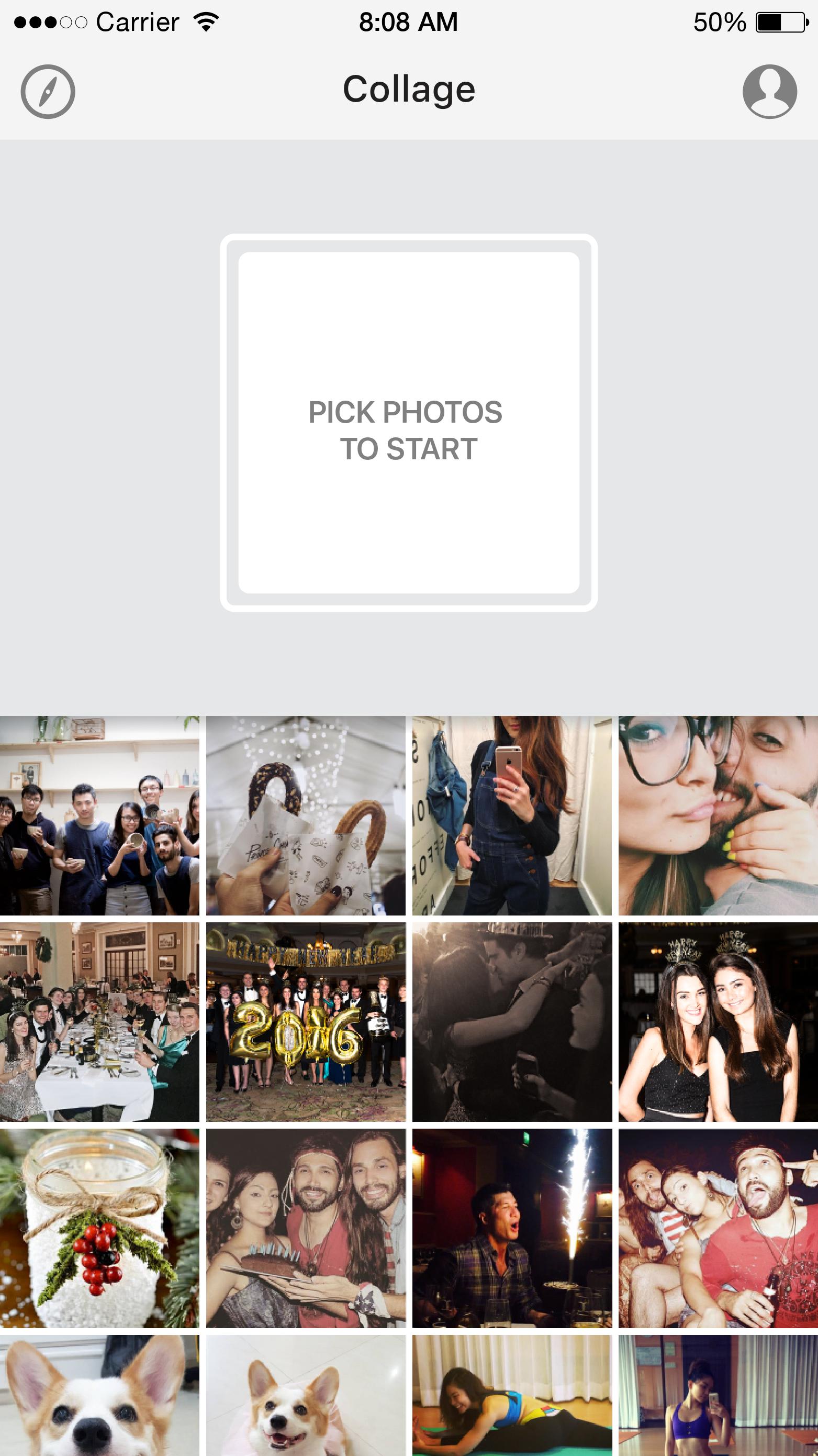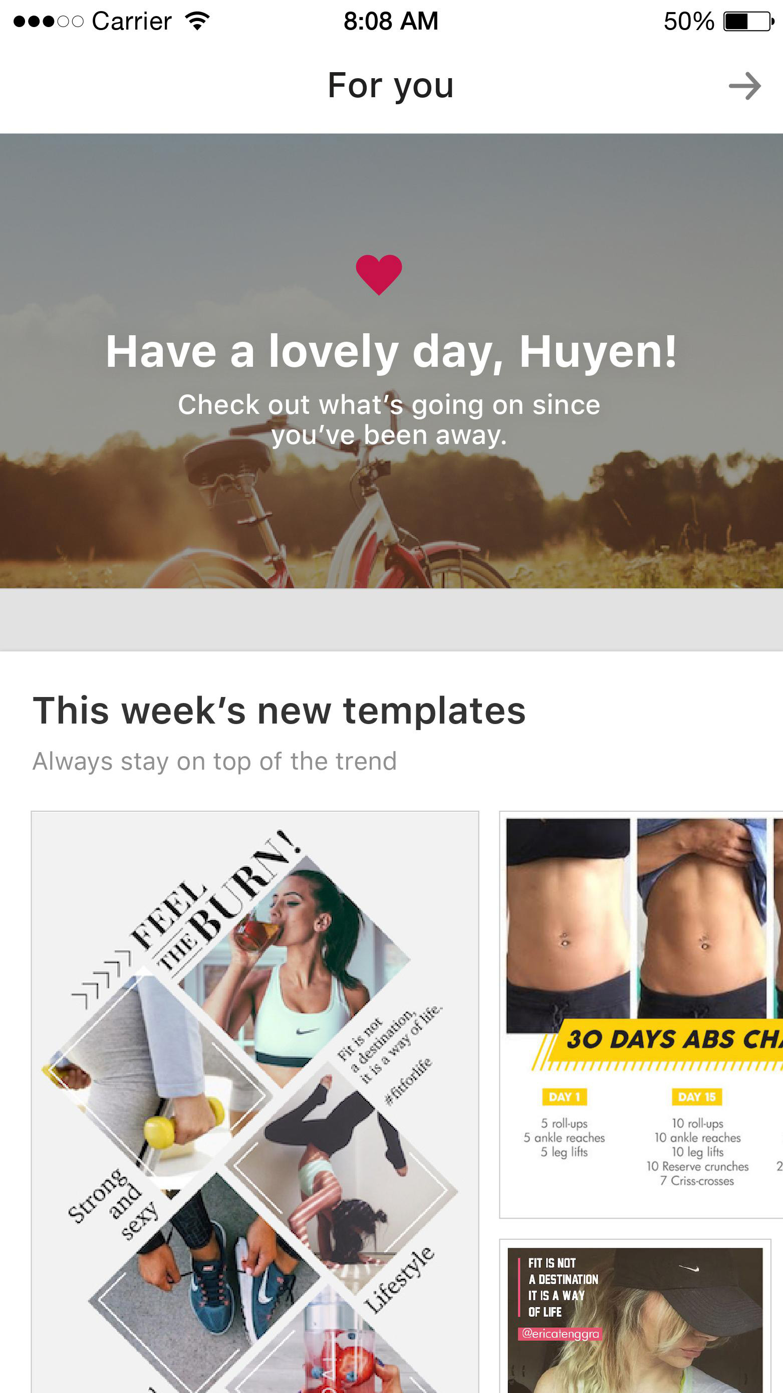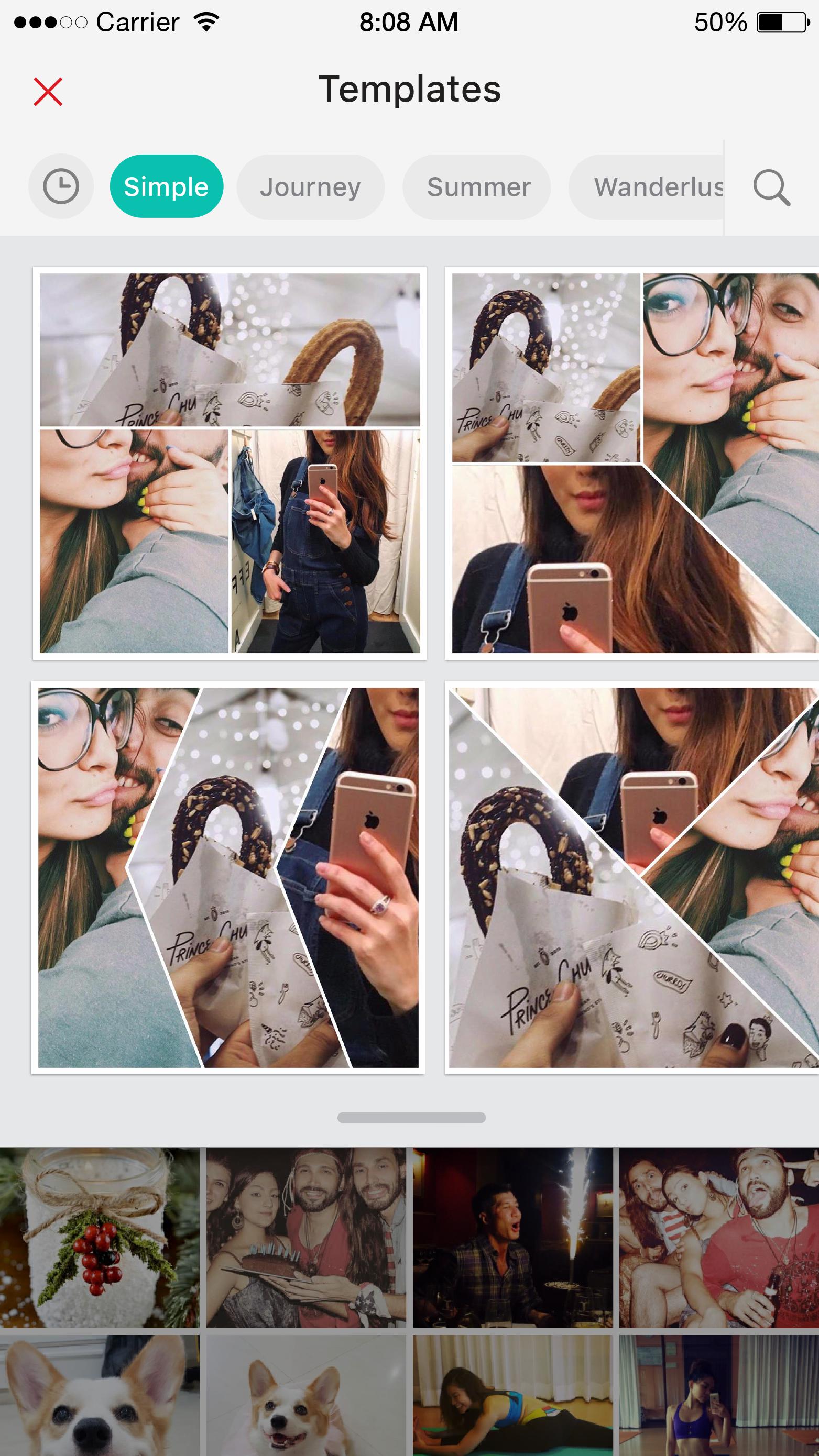 Observing that users were having a hard time creating beautiful collages, we added a template feature with ready-made collages for them to quickly slot their images in.