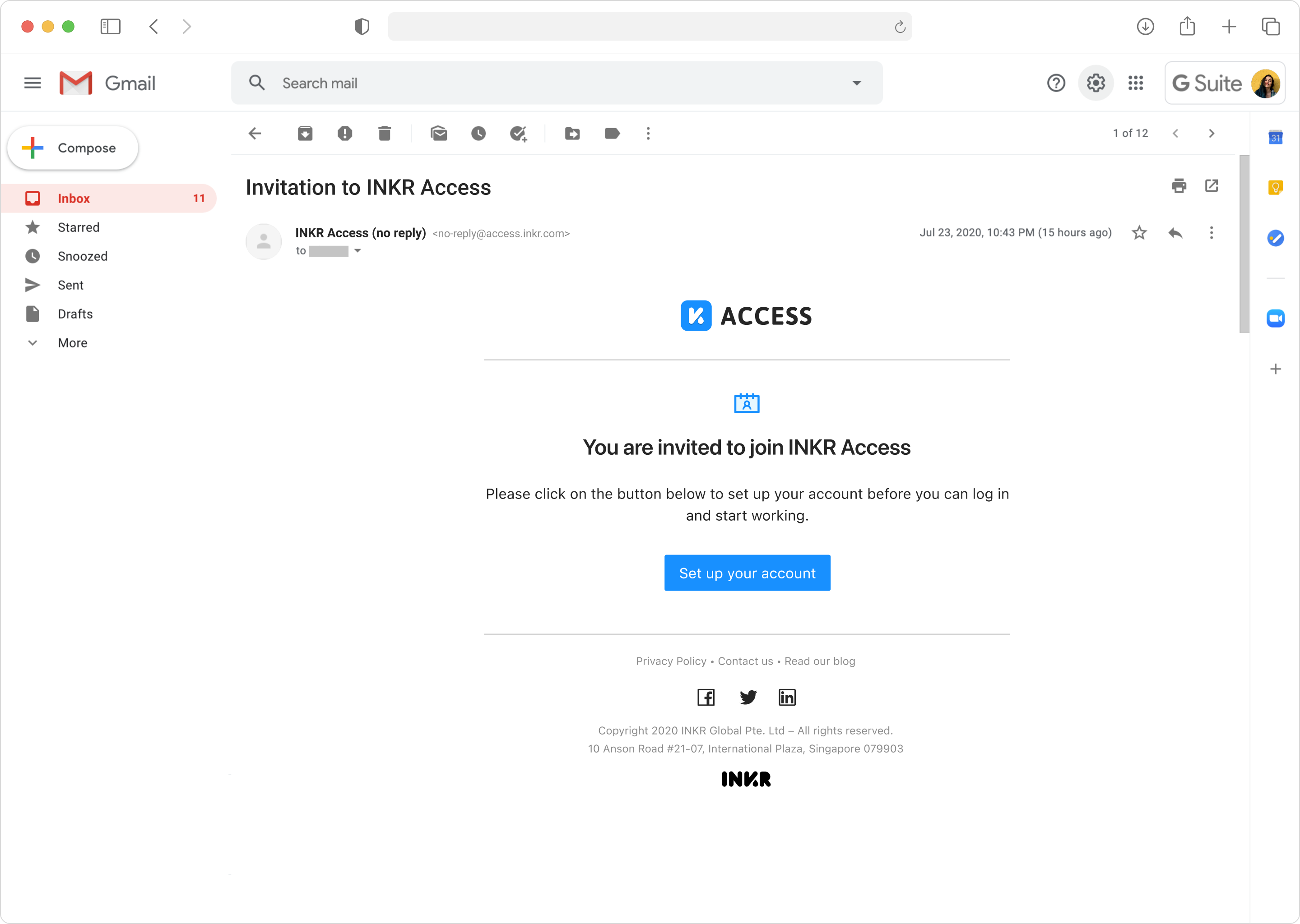 - Person receives email that they are being invited to INKR with a specific role: INKR CMS user, INKR LS user