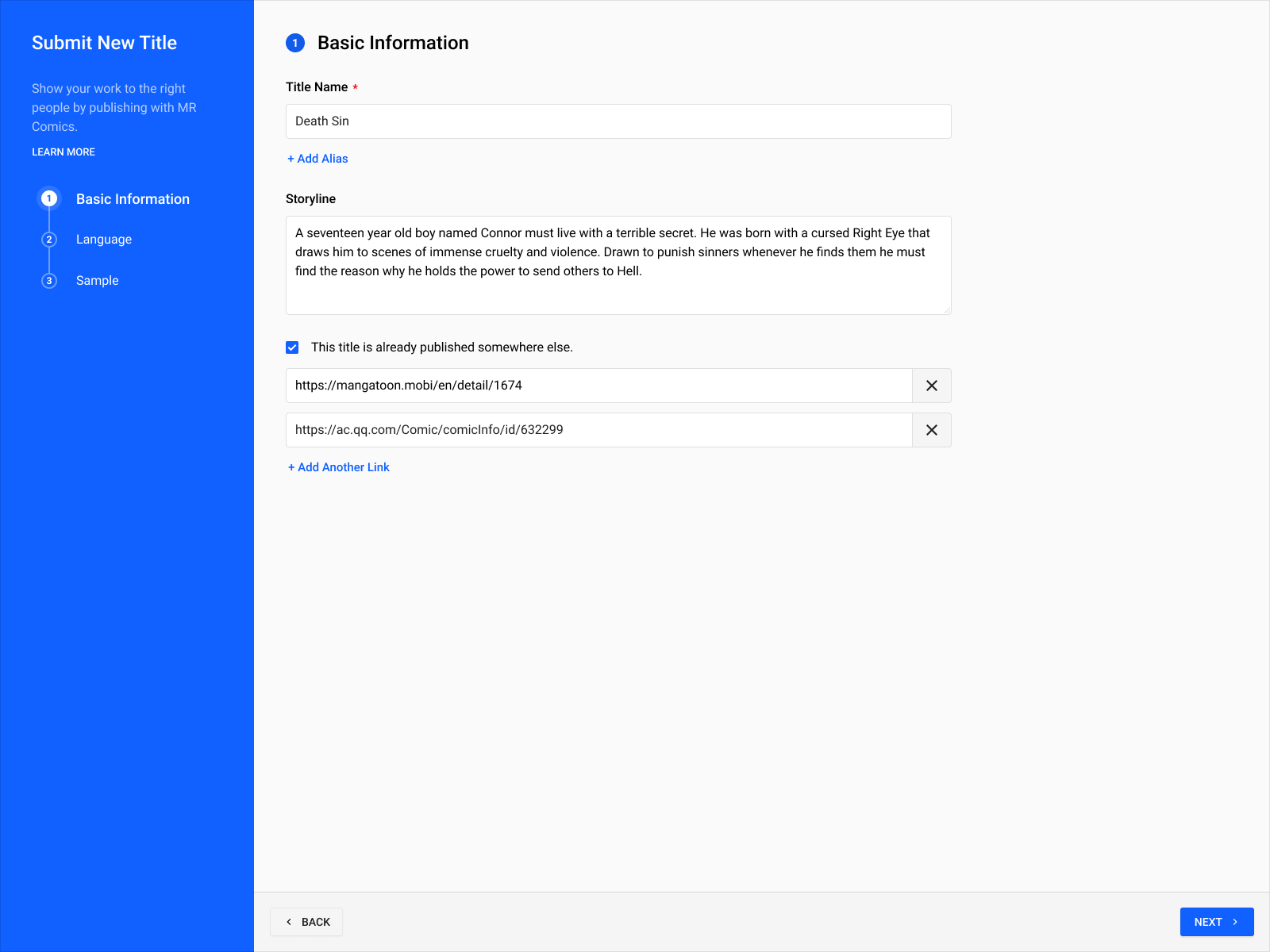 However, in 2020, due to the pressing need for a place to store legitimate content to be published inside the new INKR Comics mobile app, the product was rushed and launched to the internal content team to use for the content licensing process. The product proved to be too difficult to use for internal purposes, as it was originally designed for an ordinary audience, with a lot of hand-holding and rigid step-by-step processes.