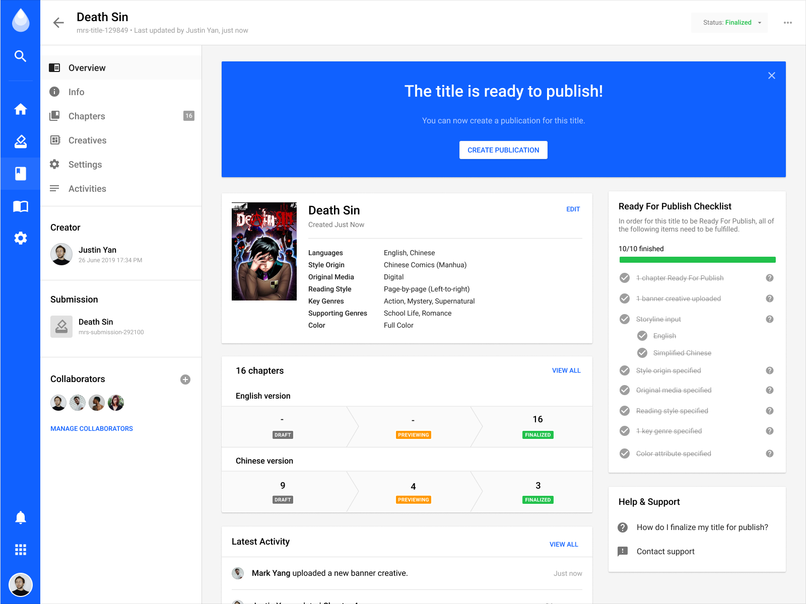 For all comic creators around the world who want to get their comics into the hands of readers, INKR Backstage is a cloud-based publishing service that allows comic creators to submit and publish their comics digitally.
