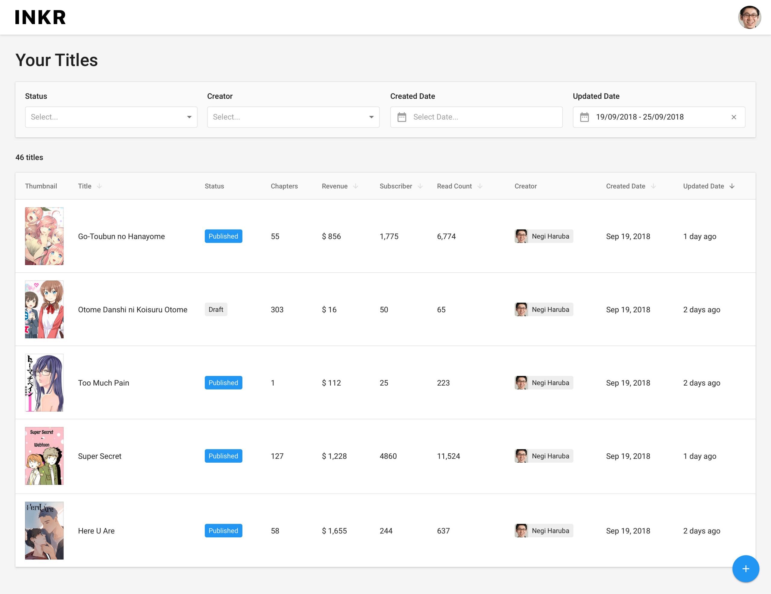 Unlike other publishing services, INKR Creator Studio is totally self-served, leveraging technology to remove the human bottleneck usually associated with publishing.