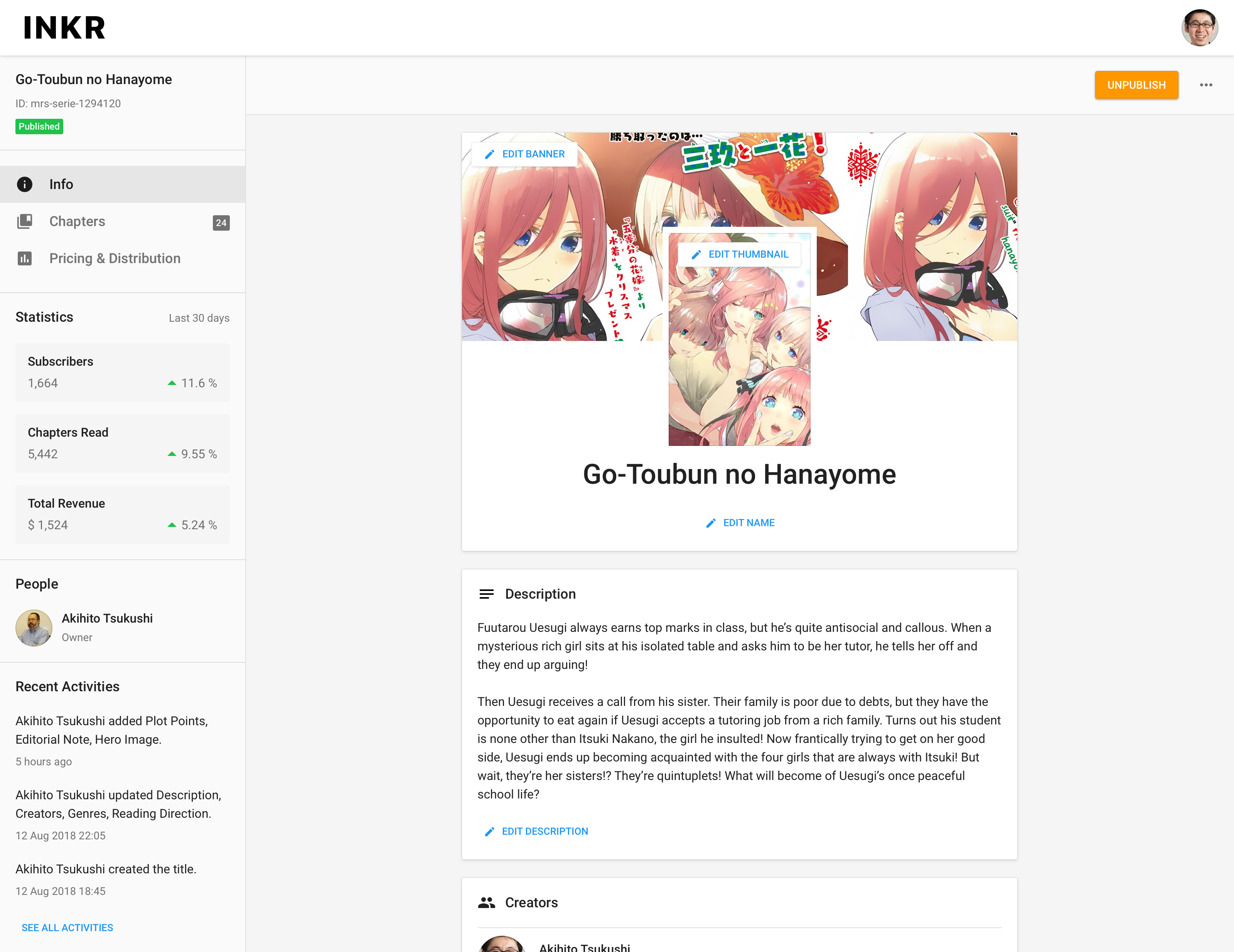 For digital art creators that need to publish and monetize their content to a worldwide audience, INKR Creator Studio is a suite of sophisticated tools and services that catered for an end-to-end process of creating, collaborating, distributing, and monetizing digital content, as well as engaging with their readers.