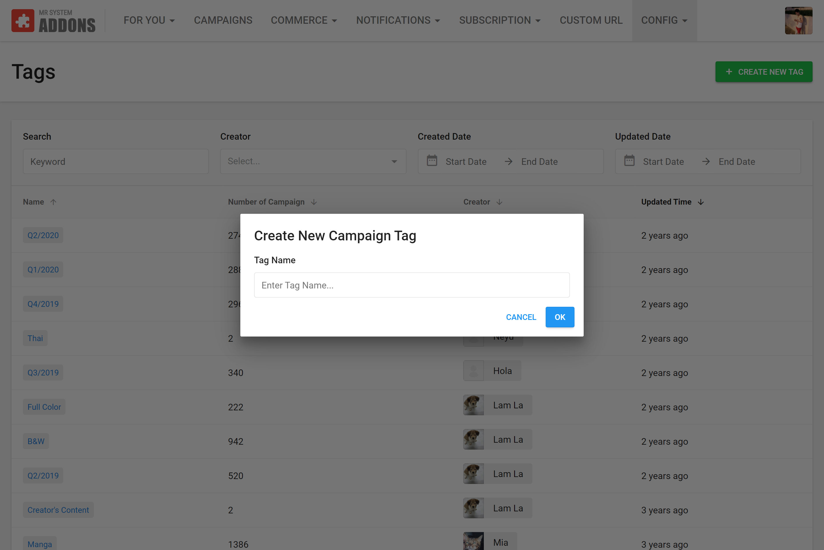 So we can be sure that there will be a huge number of campaigns being created and running on the system. Therefore, the ability to manage these campaigns becomes very important. The content team needs to be able to organize, search, filter extensively in order to drill down to the info they want and extract meaningful insights from them.