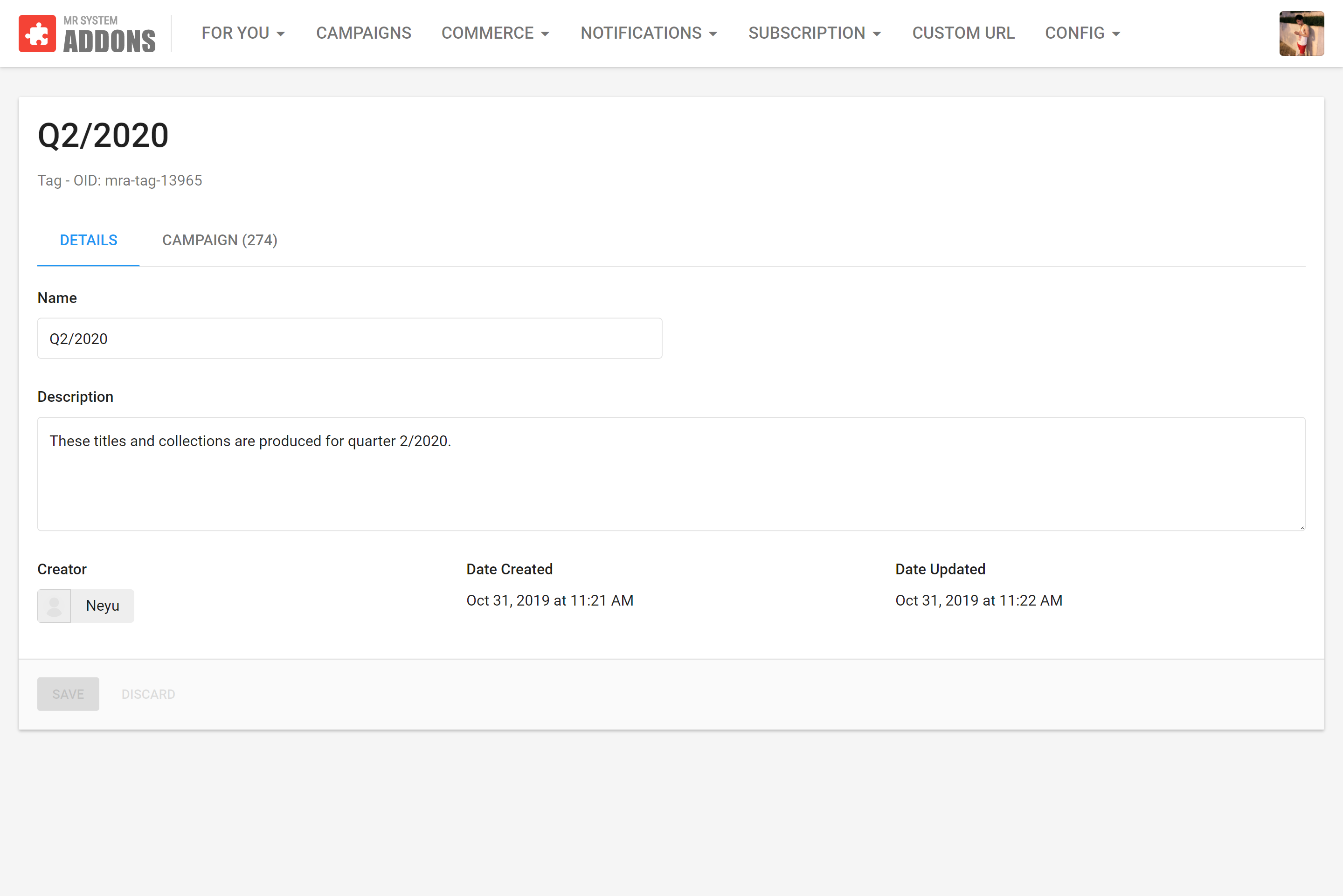 - Tags - to manage the campaigns