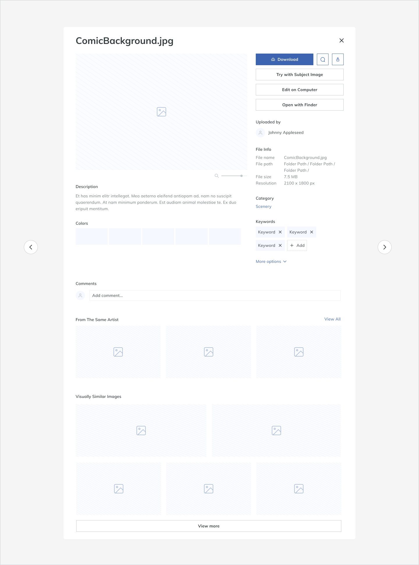 In this UX challenge project, my goal is to re-imagine the experience of opening, viewing, and interacting with a single asset for creative professionals on this DAM Product.