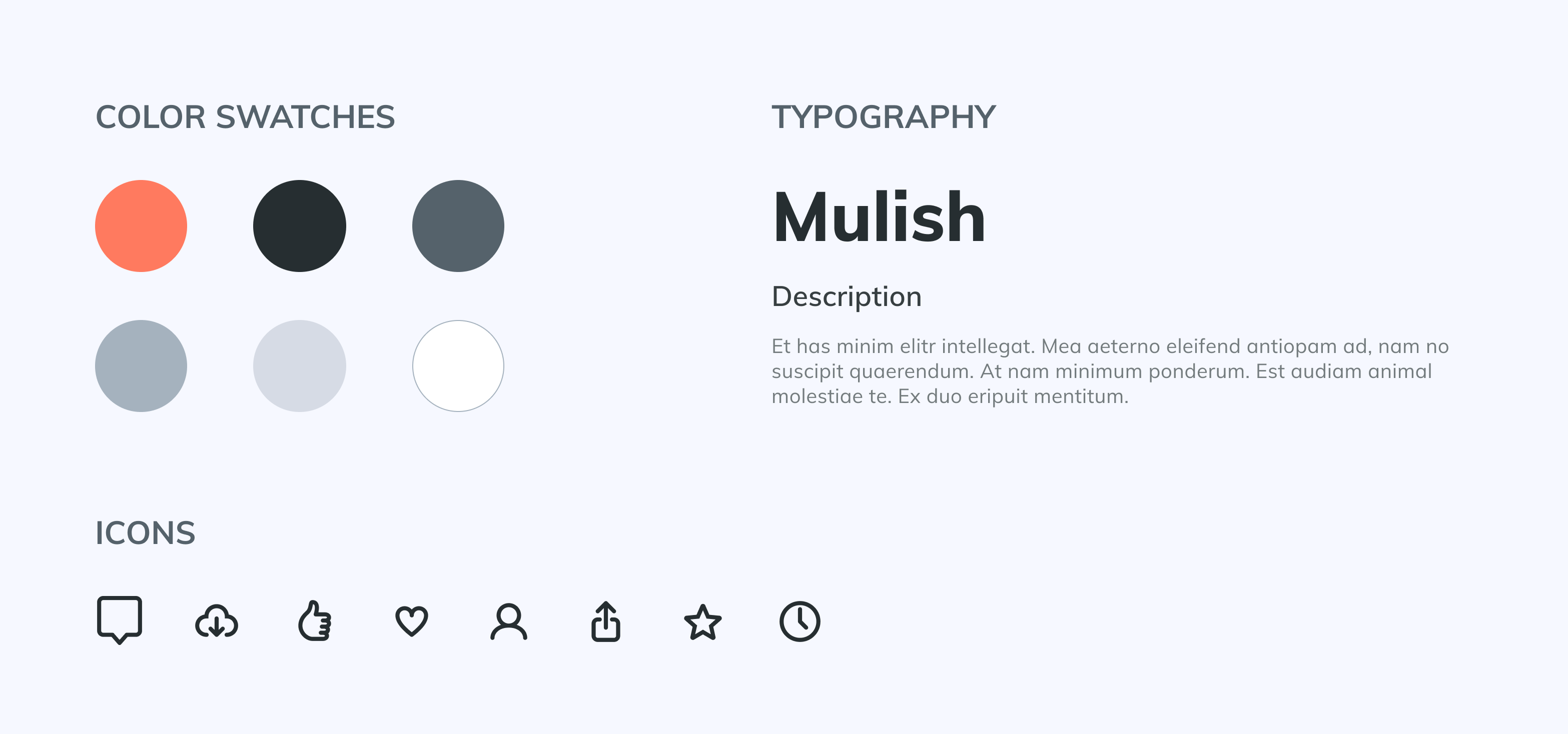 Below is a simplistic overview of the visual style guide that I'm going for for this project.