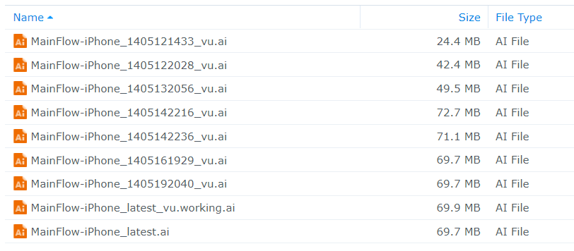 To keep the design files organized, we used a custom script to automate the versioning effort. Basically, every time you want to make an edit, you use this script to duplicate the AI file, which would duplicate and rename based on the configured convention.