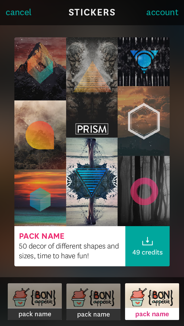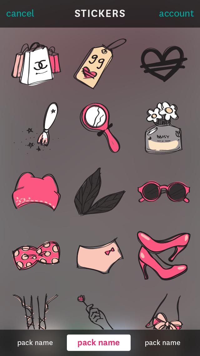 We also looked into the demographics of Fuzel's users, which was predominantly female, and decided to overhaul the visual style so that it would be more appealing to them. These sticker, label, and frame packs would be produced and added over time to generate a continuous stream of revenue from existing paying users.