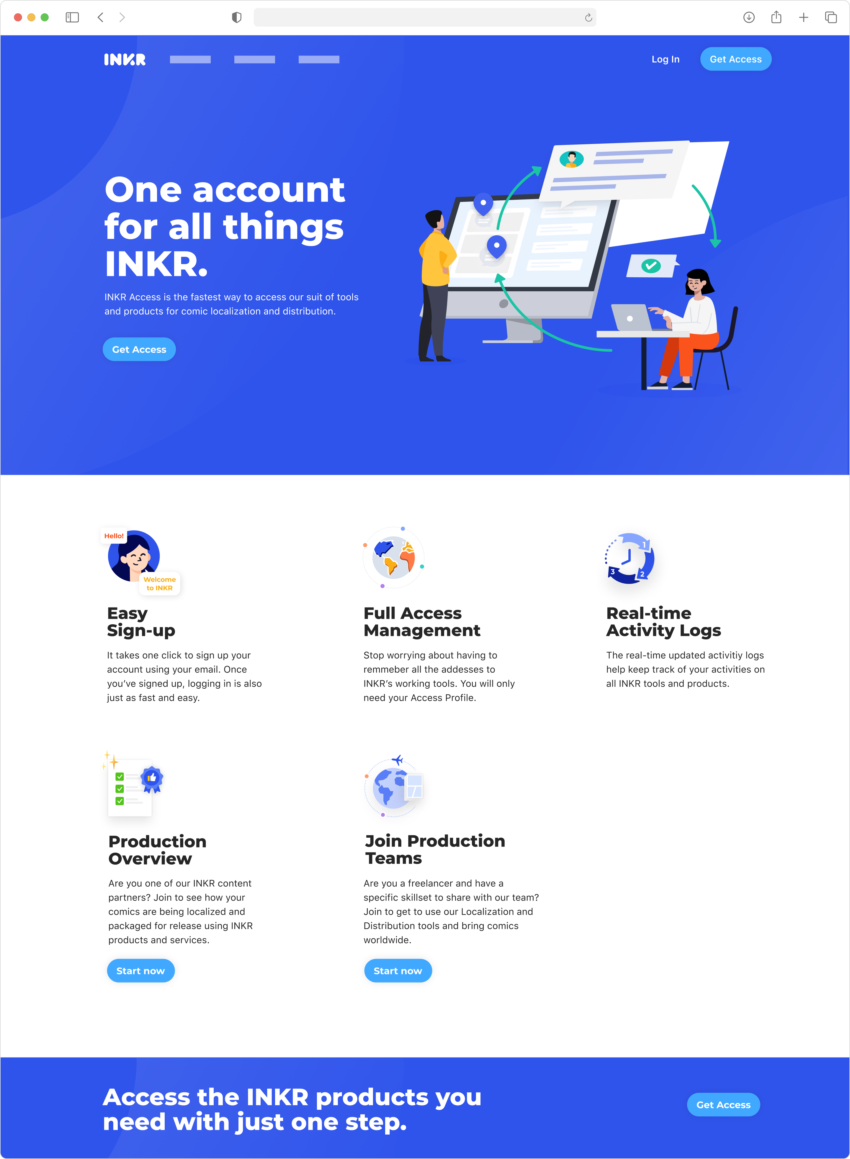 INKR Access is an enterprise product with the aim to provide a centralized hub to manage access to other enterprise products, in which new users will be able to register and follow a path to provide their information into the system, reducing the back-and-forth and overhead cost of onboarding new users.