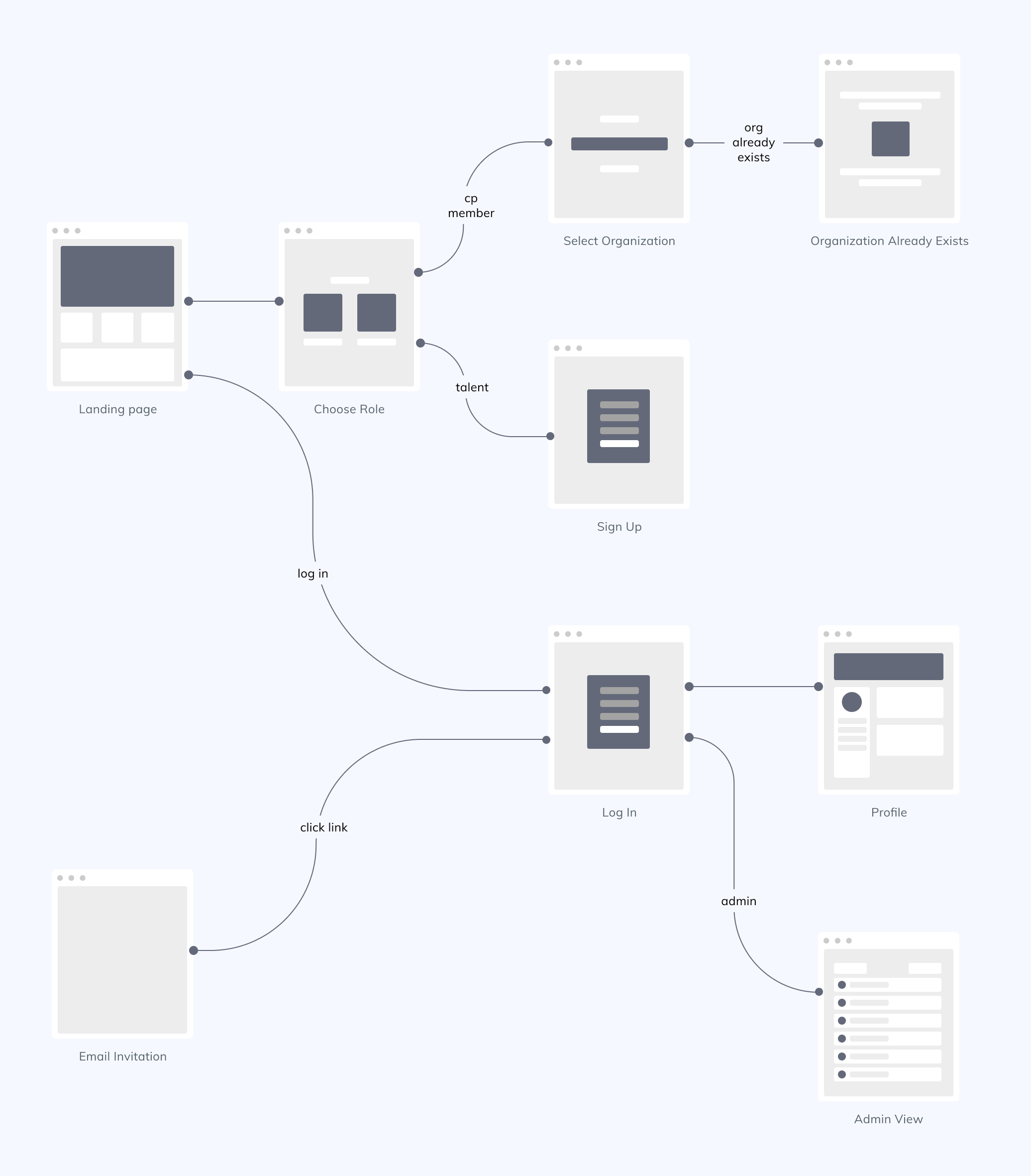 There are 2 types of users (CP Members and Freelancers) as well as 2 entry points that can happen: organic and invited. Therefore we identified 4 user journeys to cater for: