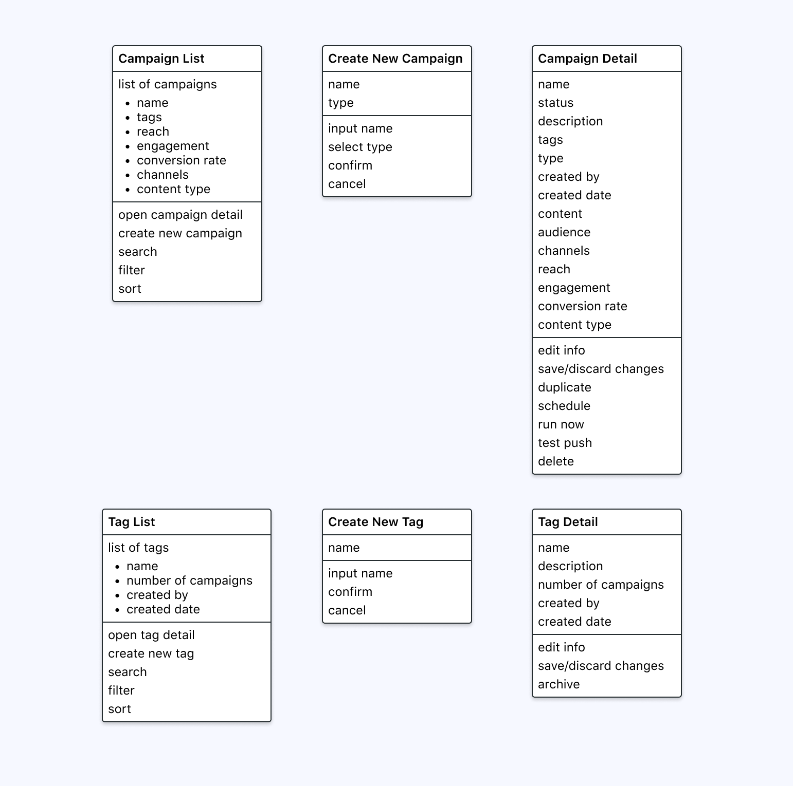 Used to attach to each campaign as a way to manage them more effectively. A tag contains a name and description.