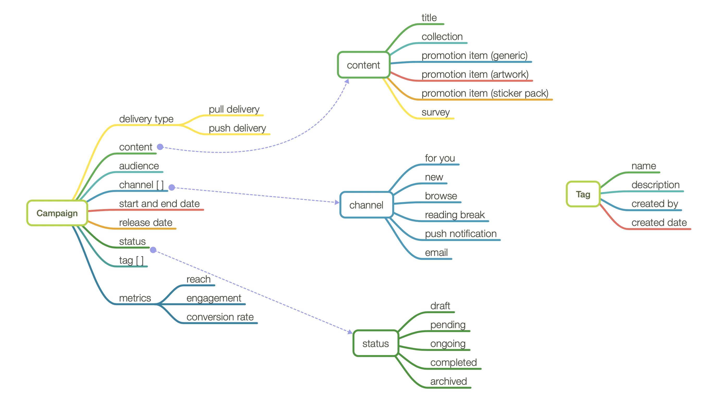 Next, I came up with conceptual models to meet the content team's needs.