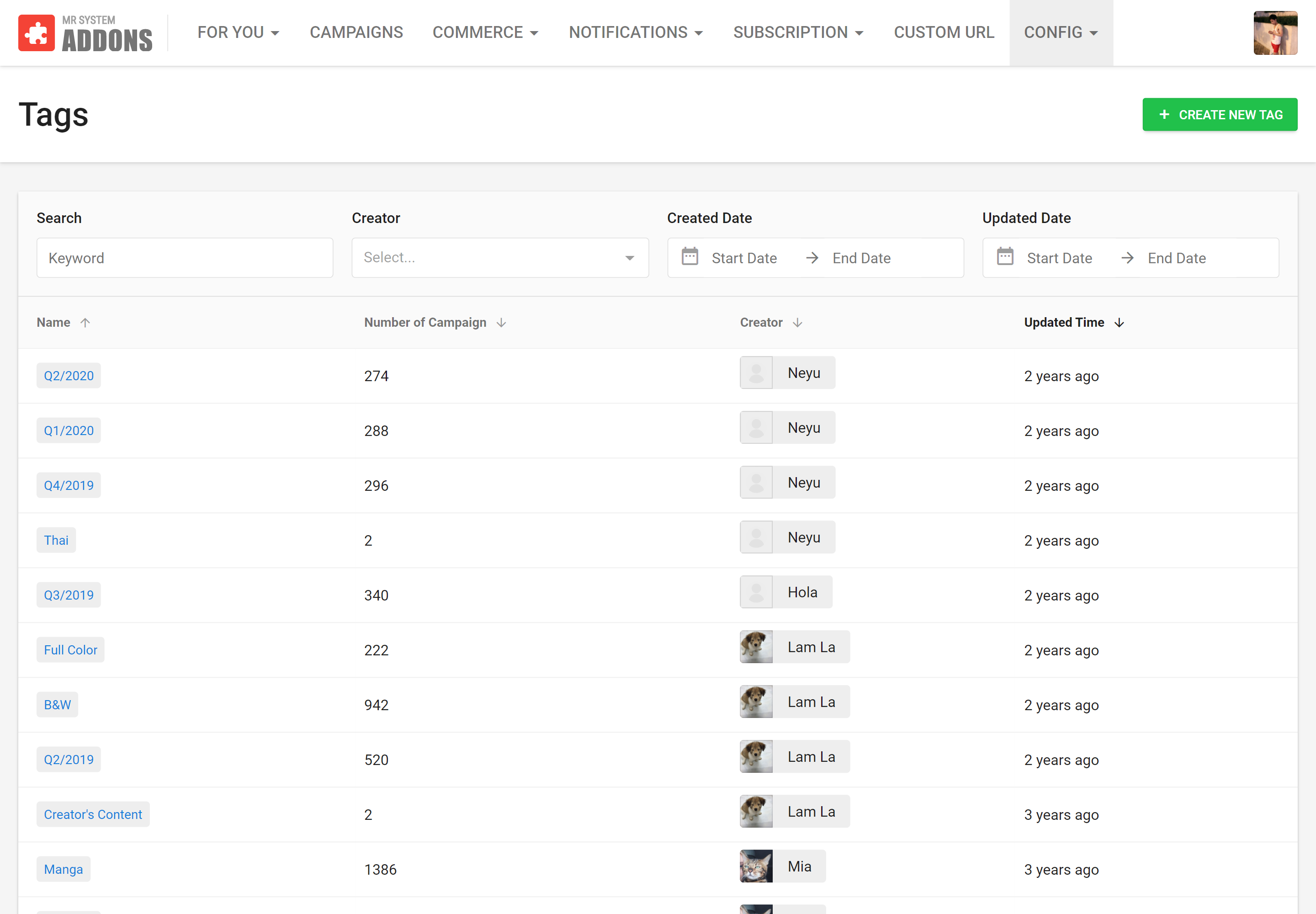 So we can be sure that there will be a huge number of campaigns being created and running on the system. Therefore, the ability to manage these campaigns becomes very important. The content team needs to be able to organize, search, filter extensively in order to drill down to the info they want and extract meaningful insights from them.