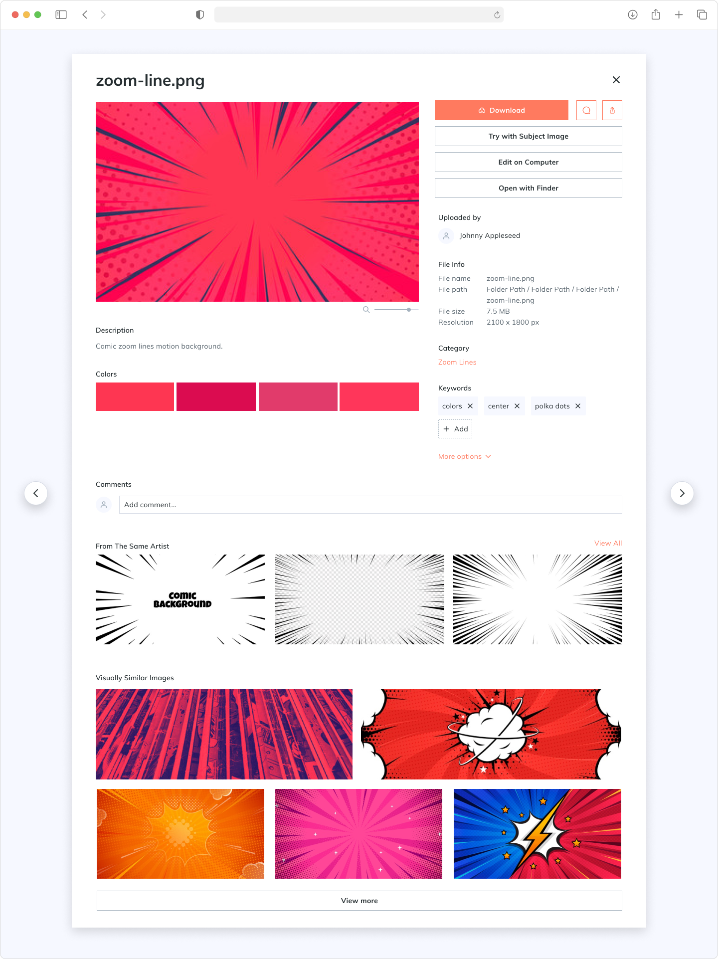 In this UX challenge project, my goal is to re-imagine the experience of opening, viewing, and interacting with a single asset for creative professionals on this DAM Product.