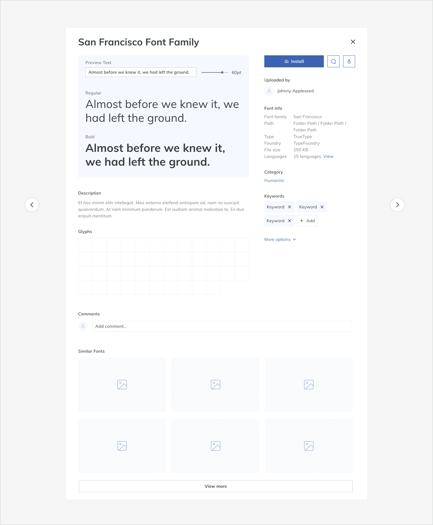 - View the details of the font to see if it fits my needs. It would be nice if I can type in some text to preview how it's rendered using the said font.
